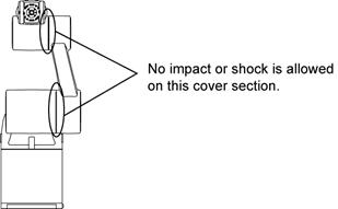 When transporting or maintaining the cleanroom type of robot units, take care not to apply an impact or shock to the cover section specified below. An impact or shock applied to the cover section or the resulting deformed cover section may deteriorate the cleanliness performance.