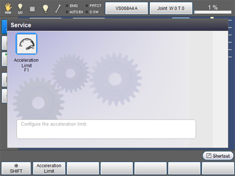 | [F1 Acceleration Limit] | Set the maximum acceleration limit. |