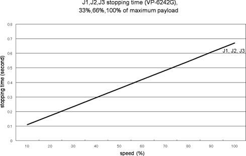 J1, J2, J3 Stopping Time vs. Speed at an Emergency Stop (VP-6242 series)