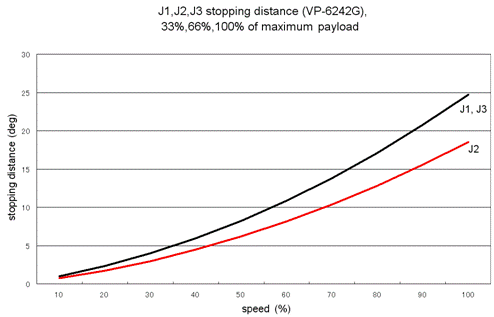 J1, J2, J3 Stopping Distance vs. Speed at an Emergency Stop (VP-6242 series)