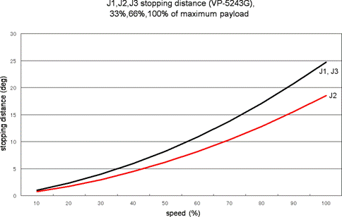 J1, J2, J3 Stopping Distance vs. Speed at an Emergency Stop (VP-5243)