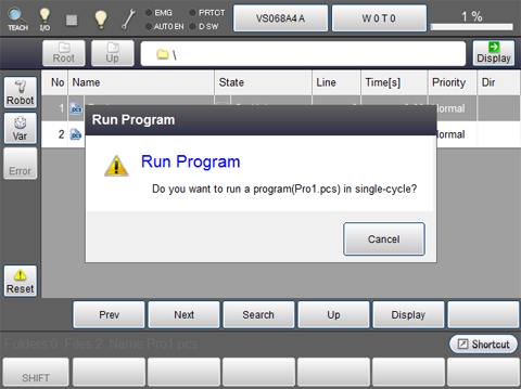 Press [OK] while pressing the deadman switch. Keep pressing both deadman switch and [OK] until the execution of program is completed.