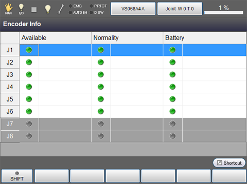 Operation path : [F2 Arm] - [F12 Maintenance] - [F2 Encoder] - [F1 Encoder Info]