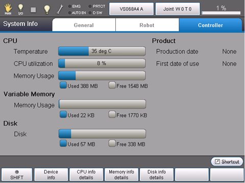 Operation path : [F6 Setting] - [F2 System Info] - [Controller tab]