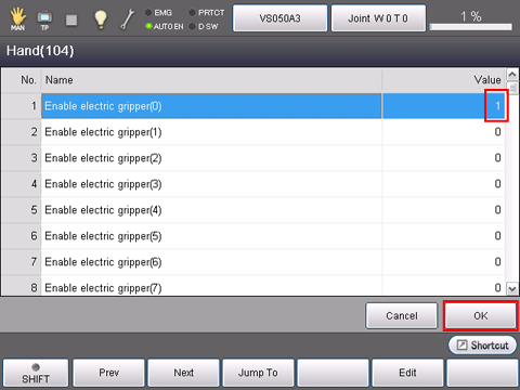 Press [F2 Parameter] to display the screen below. Select the hand number to be activated.