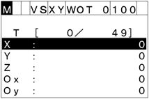 To interrupt the robot arm's movement to the specified target position, release [OK]. The screen returns to the target position setting one. Pressing [OK] again restarts the movement to the target position. Pressing [CANCEL] returns the screen to the Position Variable one.