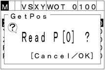 If you choose "GetPos" with the up and down cursor keys and press [OK], then the current position reading window appears as shown below.