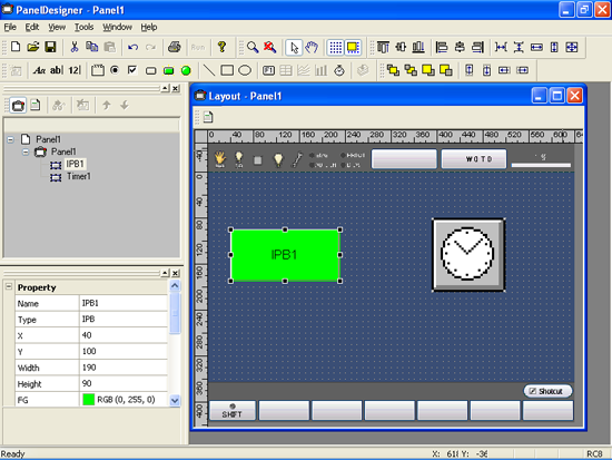 An illuminated push button combines button and lamp operation. It therefore supports CLICKED, RELEASED events for adding action source code.