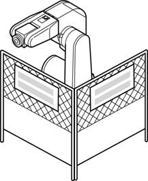 A safety fence should be set up so that neither operator nor third person can easily enter the robot's restricted space. Safety fences should be set up based on user's risk assessment.