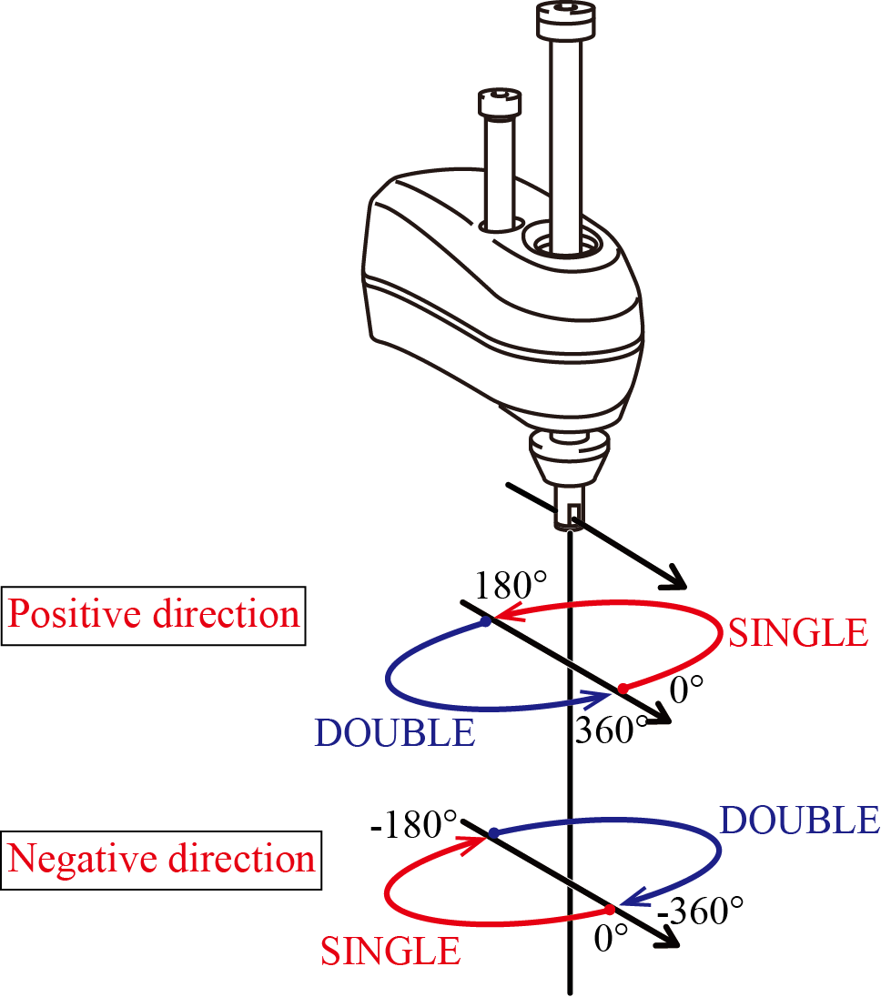 If the rotation angle (θ4) of the 4th axis is within the range of -180°<θ4≤180° around the Z axis in mechanical interface coordinates, the figure is SINGLE; if it is within the range of 180°<θ4≤360° or -360°<θ4≤-180°, the figure is DOUBLE.