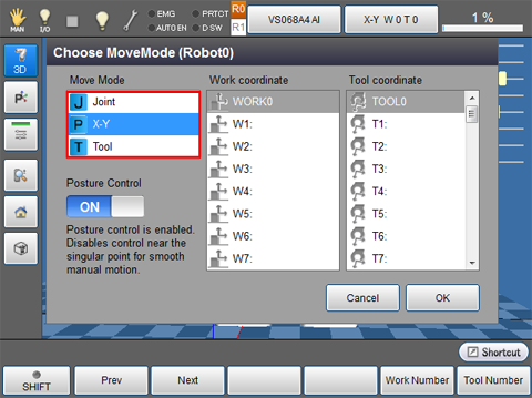 Manual operation in the cooperative motion is available when the move mode is X-Y or TOOL.