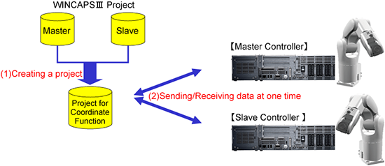 Cooperative robot tool is a support tool for robot operation that use cooperative control function, such as, creating a new project from an existing WINCAPSIII project, executing data sending/reception between master and slave controllers at one time.