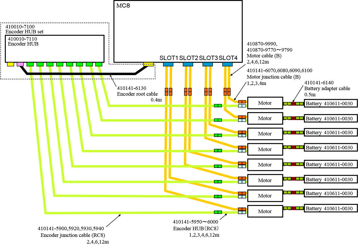 MC8 is a controller whose all joints can control extended-joint motors. For details about extended-joint, refer to "Extended-Joint Function". This function is available from Ver.1.5.* or later.