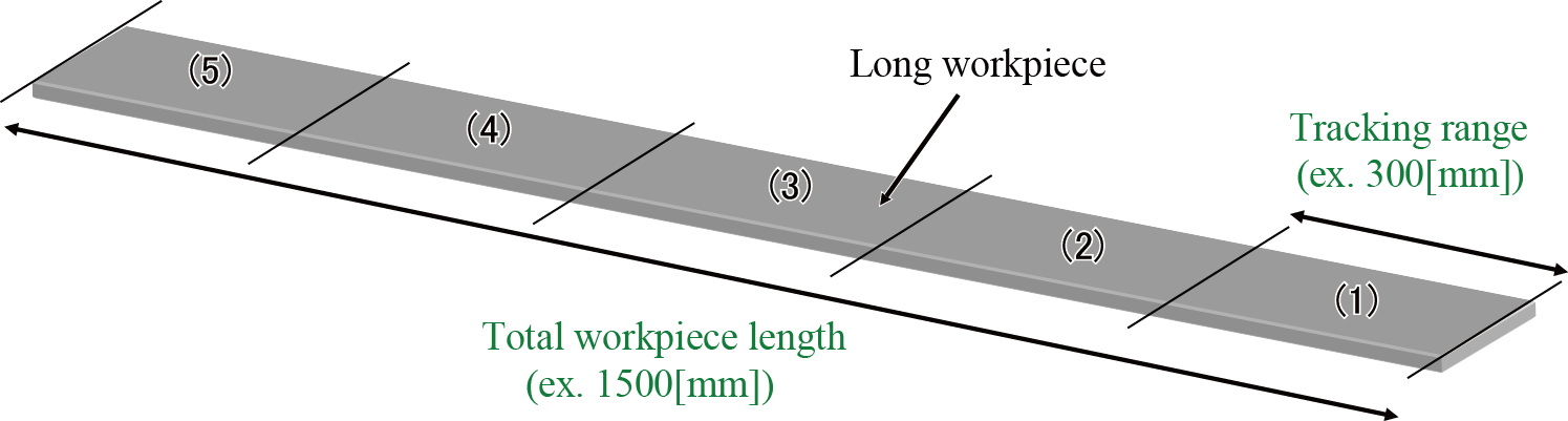 If the workpiece is a long object, divide the total workpiece length by the tracking range length, and then perform the sensor tracking for respective divided areas. If the calculation result of the division is N, perform the sensor tracking N times.