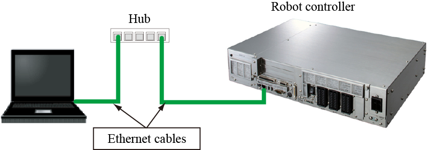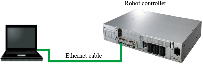 This method uses an LAN interface (CN4) to connect the computer to the robot controller.