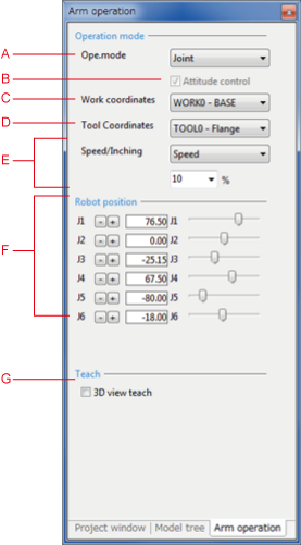 Moves the robot displayed in Arm 3D view in accordance with the selected movement mode.