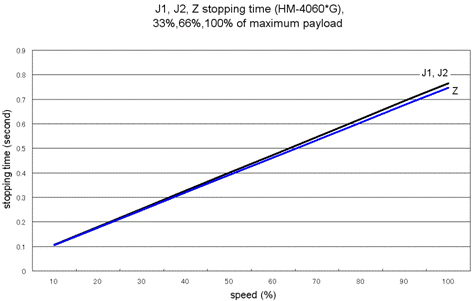 J1, J2, Z Stopping Time vs. Speed at an Emergency Stop (HM-4060*-W)