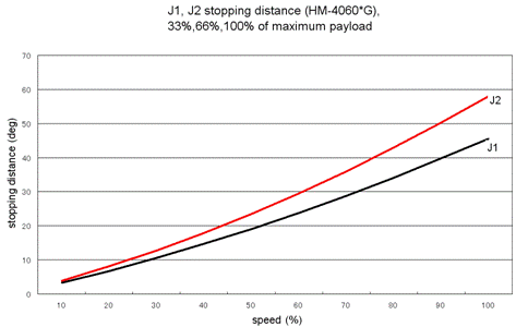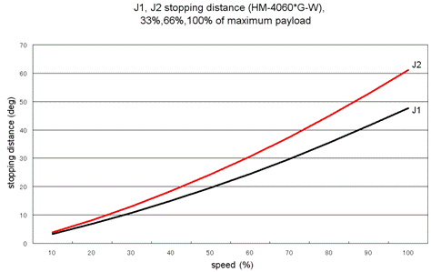 J1, J2 Stopping Distance vs. Speed at an Emergency Stop (HM-4060*-W)