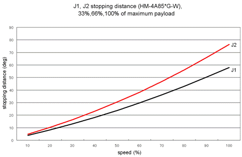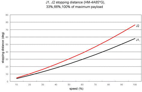 J1, J2 stopping distance vs. speed at an emergency stop (HM-4A85*-W)
