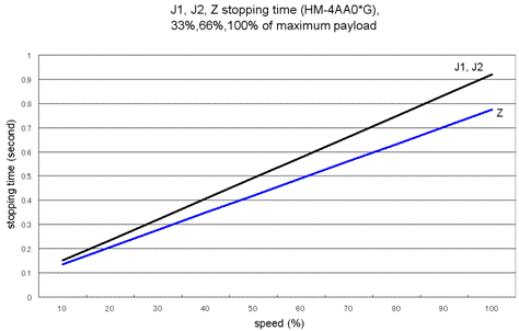 J1, J2, Z Stopping Time vs. Speed at an Emergency Stop (HM-4AA0*-W)