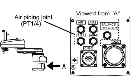 In addition to the four piping systems, the robot unit except the dust- & splash-proof type is equipped with another air piping system for the air balance cylinder (6 mm diameter). Air to be supplied to the cylinder should satisfy the following specifications.