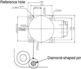 Drive a diamond-shaped pin into the hole (HS/HSS: φ4H7 dia.) so that the pin becomes oriented as shown below.