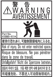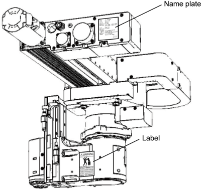 The robot unit has warning labels pasted as shown below. They alert the user to the dangers of the areas on which they are pasted. Be sure to observe the instructions printed on those labels.