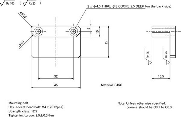 Drawings of the Upper End Fixture for the Extension Plate (Z-axis stroke: 200 mm)