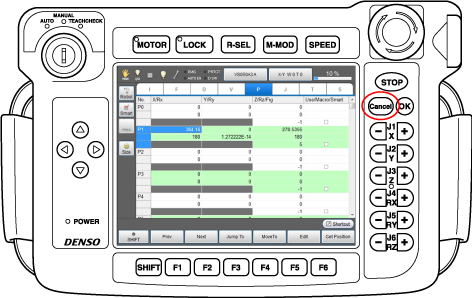 Press [Cancel] button once to go back to [Current Robot Position] window.