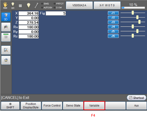 If robot arm information is displayed on the right side of screen when variable window opens, the information can be deleted by pressing [Robot] button.