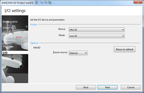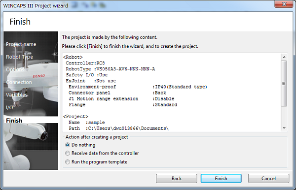 If the robot and the controller are set up, import one of projects held in the robot controller into WINCAPS III to create a new project.
