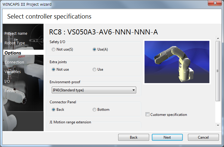 Selectyour robot controller specification then press Next.