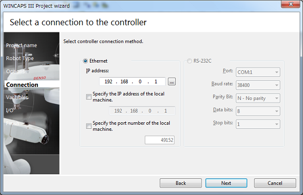 This method can be used when the robot is not linked. Used for creating projects in advance of robot installation (when designing equipment, etc.) Match the settings with the controller to link to. Errors will occur during linking if the settings do not match. - Get information from the controller for creating a new project