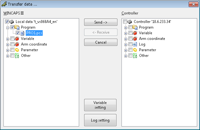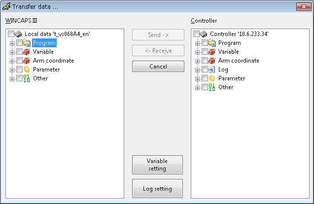 Before transmitting data (sending/receiving data between the robot controller and WINCAPSIII), it is necessary to make the communication permission settings and to check the controller operation status. Depending on the controller status, data transmission may fail.