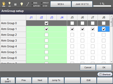 For about other arm group settings, refer to "Registering Extended-Joints in an Arm Group" on the "Extended-joint Manual" .