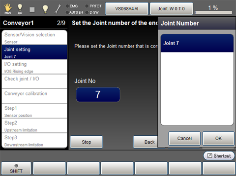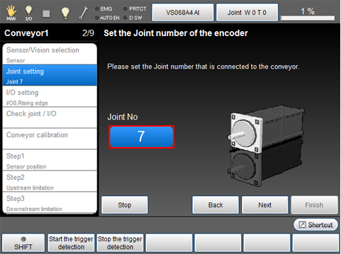 This section describes how to set the joint number of the encoder that is connected to the conveyor.