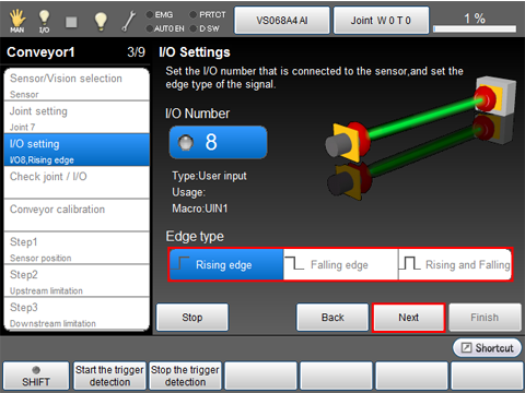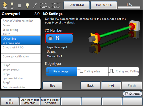 This section describes how to set the I/O port number that is connected to the sensor detecting workpiece, and the edge type.