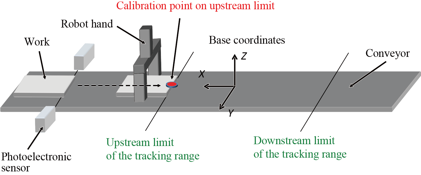 With the conveyor catch-up motion, move a robot arm to the tracking target work.