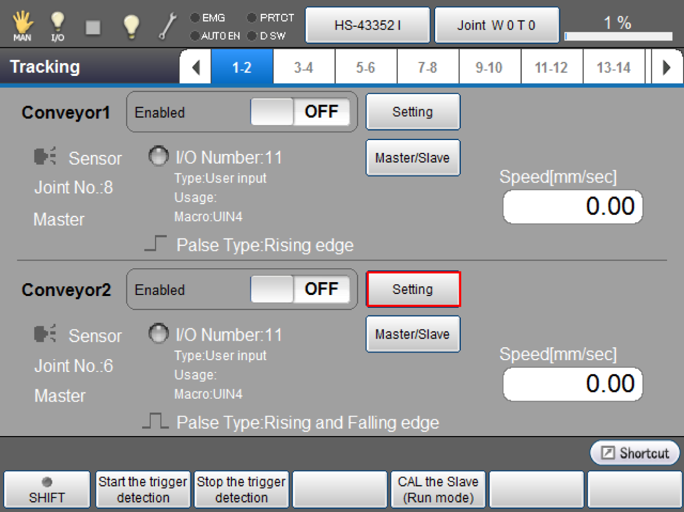 Setup the "Conveyor 2" with same procedure as the "Conveyor 1".