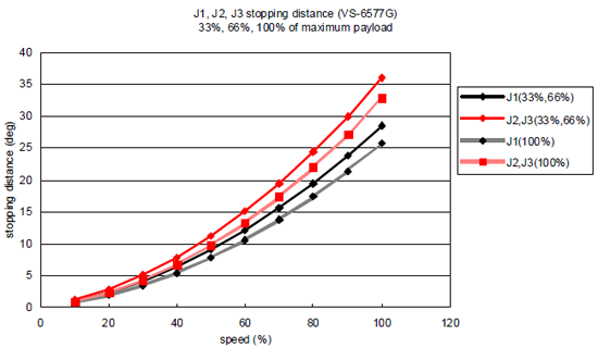 J1, J2, J3 Stopping Distance vs. Speed at an Emergency Stop (VS-6577 series)