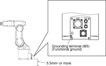 Ground the grounding terminal of the robot unit with a wire of 5.5 mm2 or more.
