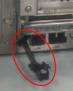 Remove the rubber cover (see a red circle in the figure below), then attach the cable clamps shipped with the robot.