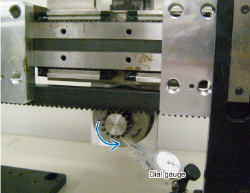 Set the dial gauge on the tooth of the pinion, and then turn the pinion clockwise to check the amount of backlash.