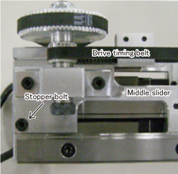 Attach the stopper bolt on the lateral side of the base plate of the middle slider.