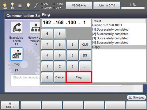 Operation path : [F6 Setting] - [F5 Communication and Token] - [F7 Ping]
