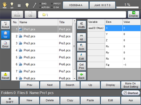 Register the current position to P-, J-, and T-type static variables. Once this button is pressed, a confirmation window for data reading is displayed. Press [OK] to read data. To cancel data reading, press [Cancel]. This button is displayed only when the current position can be registered in variables. |