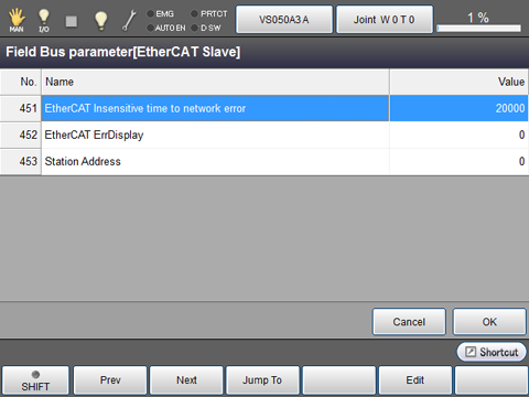 | EtherCAT Insensitive time to network error [ms] | Available range | Default Setting |