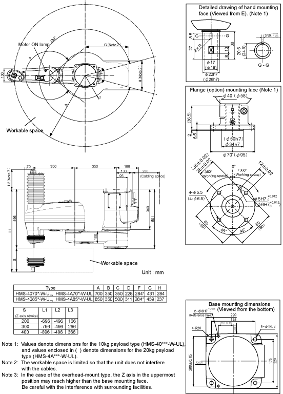 HMS-W-UL Series Robot Unit (Overhead-mount, Dust- & splash-proof type, UL-Listed model)