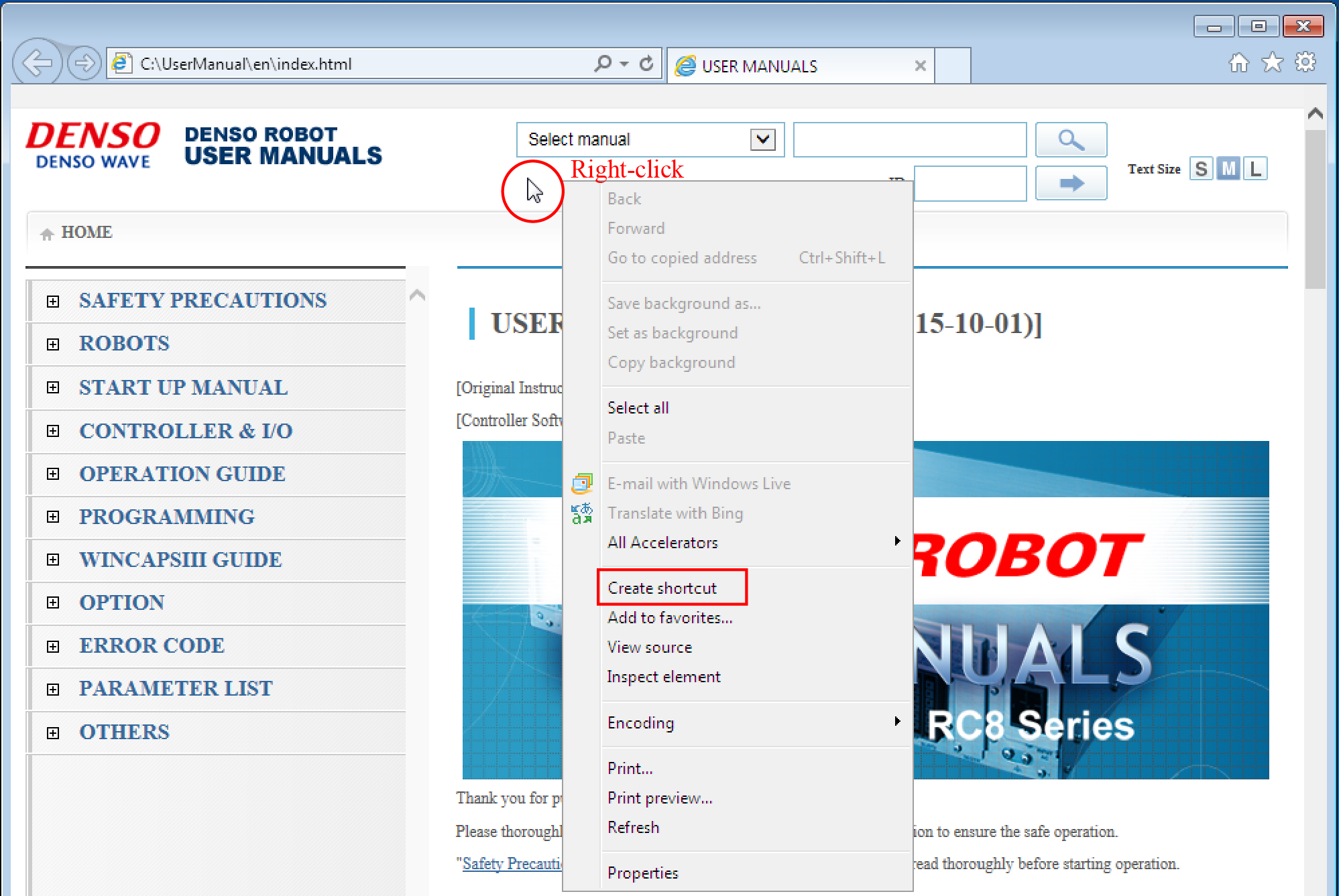 Create a shortcut of the main window of this manual on your computer’s desktop.