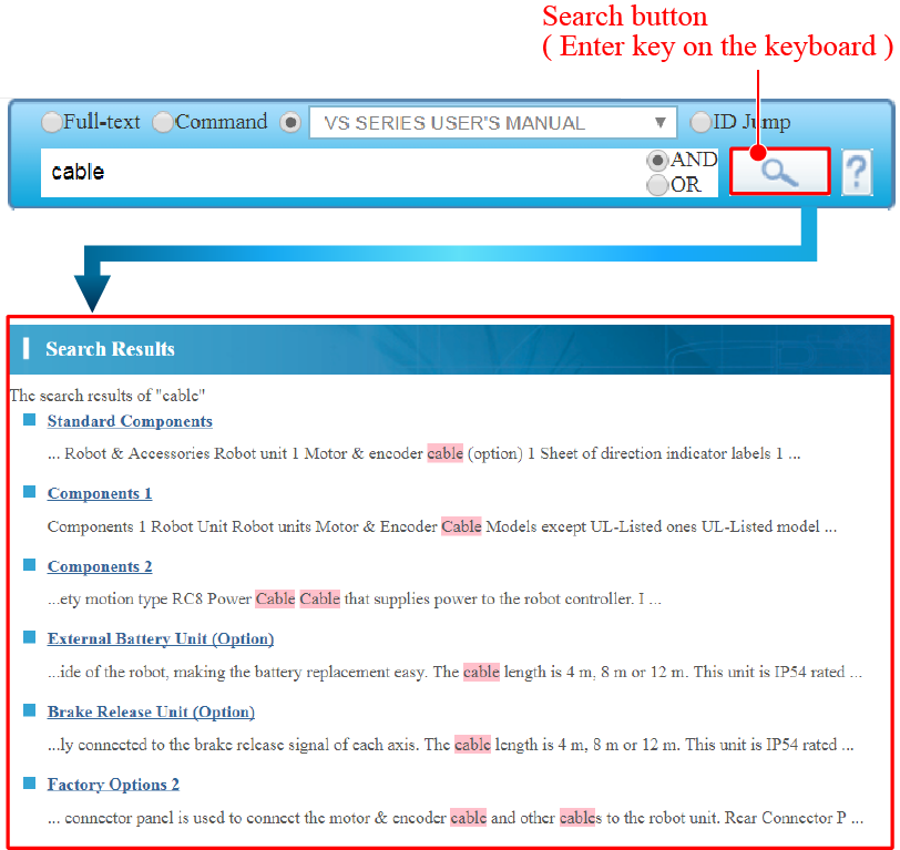 3Click [Search] button or press Enter key of your keyboard to display the search result. Click the desired content title appeared in the Search Result to jump to the contents. |